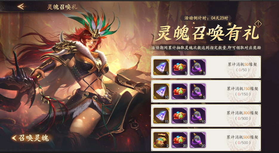 ▲瑞雪春节*测试服截图,以游戏内实际版本为准今日《乱世逐鹿》又给大家带来了怎样的惊喜与奖励呢,各位快往下看,揭开谜底! 灵魄召唤礼 召唤灵魄,送奖励好礼。“灵魄召唤礼”活动明日开启,活动时间为1月24日5:00~1月29日5:00。点击【瑞雪春节】-【灵魄召唤礼】即可进入。 在此期间,累计抽取灵魄次数达到指定数量,即可领取相对应奖励,助力诸位武将早日取得突破!