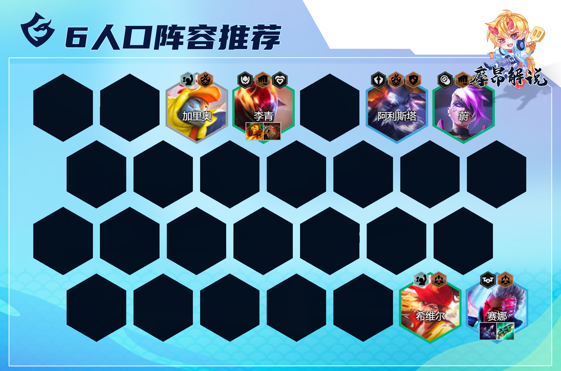 这是一套大后期阵容,比较吃前中期经济与血量运营,但阵容大成型后强度极高。如果运营能力较差不建议选择,小伙伴们可以在匹配多练习,增加些熟练度。