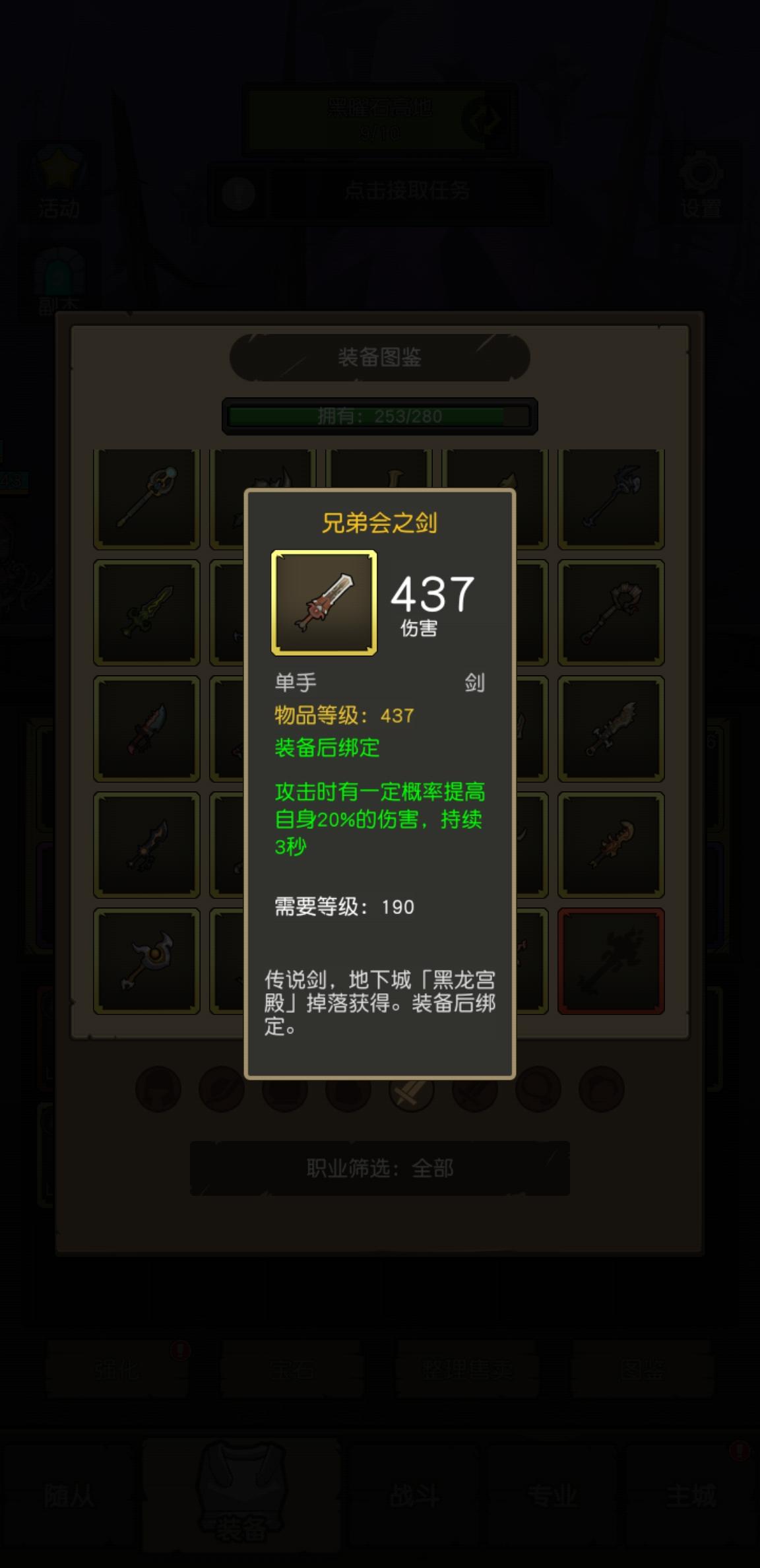 此阶段的boss伤害尽管很高,但是在你有成型的150套装的加持下,这些伤害都不是问题,唯一困扰你的可能是自己的伤害有一些低。鲜血专精提升伤害的办法不多,除了通过专精、宝石、强化提升外,目前版本可通过带一把兄弟会之剑(两把也可以)、一把末日之斧来提升效率。装备方面,可通过多次打本积累一定装备后再根据属性更换190套装。
