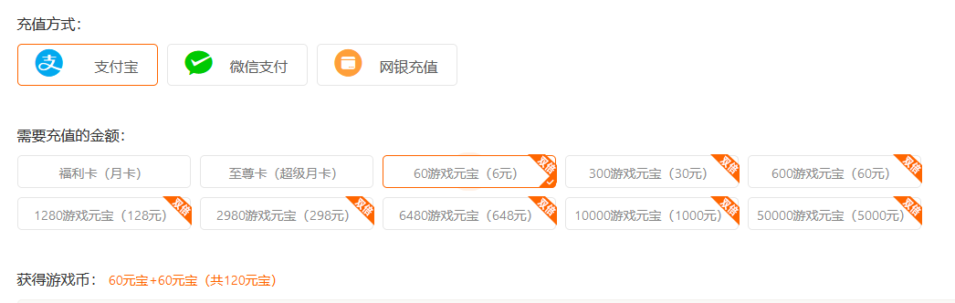 3. 每个档位的充值翻倍触发后,恢复为正常的返利比(例如充6元,还是获得60元宝+6元宝,而非60元宝+60元宝)