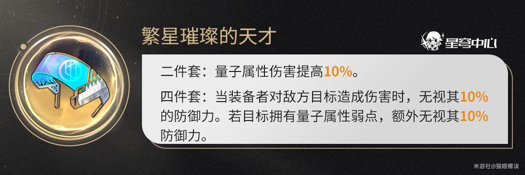 首先它的二件套提供的是量子属性增伤效果,与希儿想匹配,但最主要的原因还是在4件套的无视防御效果上;经过反复测试,无视防御效果与减防效果一致,属于同一乘区且可以叠加,而且没有设置上限,因此在与佩拉进行配队时可以发挥出巨大的潜力。