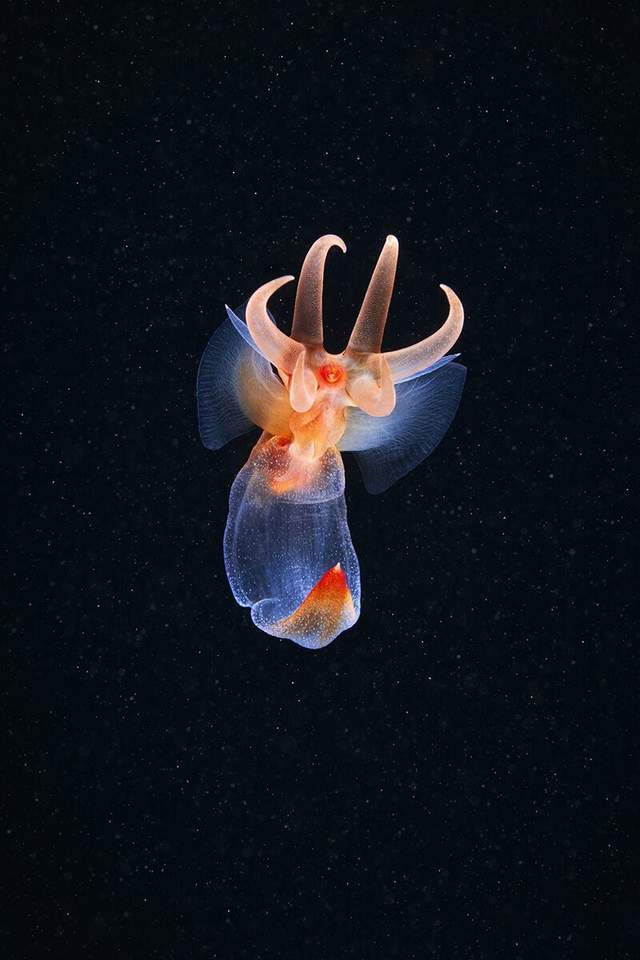 一只三到五厘米长的“海洋天使”正用其标准的狩猎姿势准备狩猎