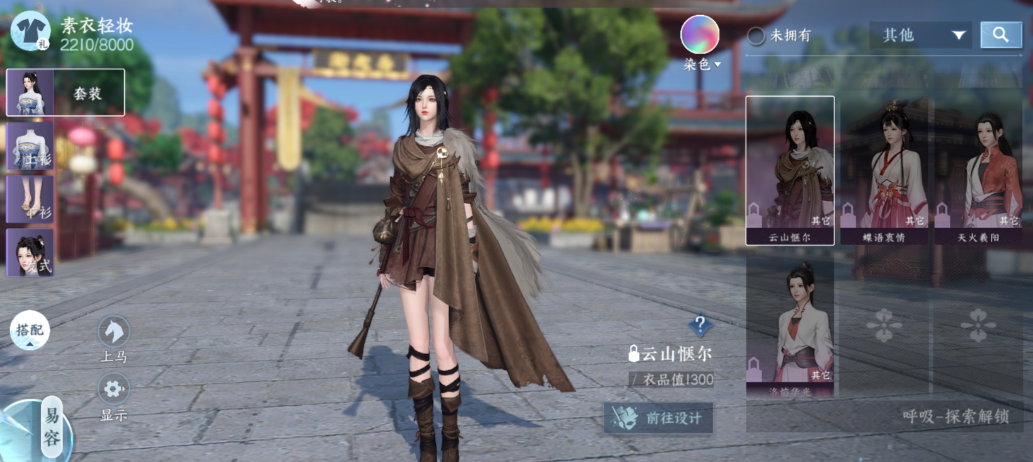 自在裳:进游戏就会有的新手时装,简单朴素,乃初入江湖时师父赠予。