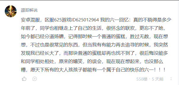 在这个六一我们收到无数份召唤师的儿时回忆,属于大家的珍贵回忆。