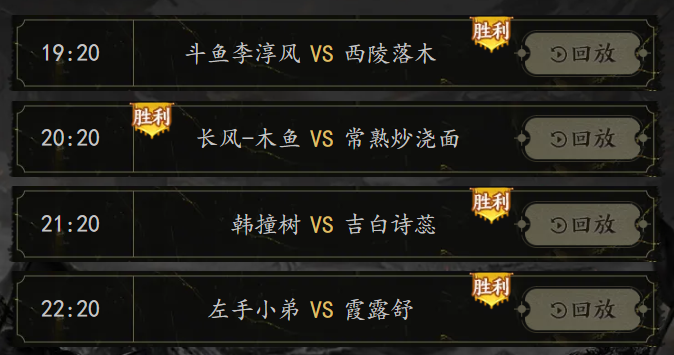 三场比赛分别是蜀魏双召唤对拼(西陵落木胜)、同阵容吴刀较量(李淳风胜)、霹雳车魏刀对阵蜀智(西陵落木胜),其中尤其以第一场蜀魏双召唤对拼尤为精彩。