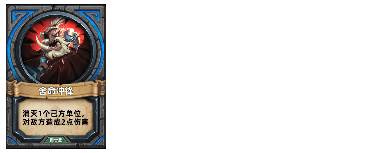 ◇『舍命冲锋』:消灭1个己方单位,对敌方造成2点伤害(回合型)【稀有品质】