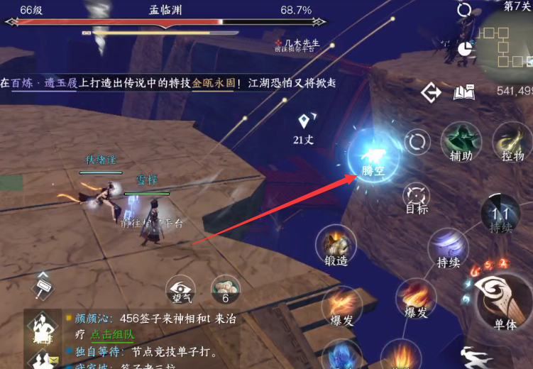 顺着风口方向,点击腾空技能。