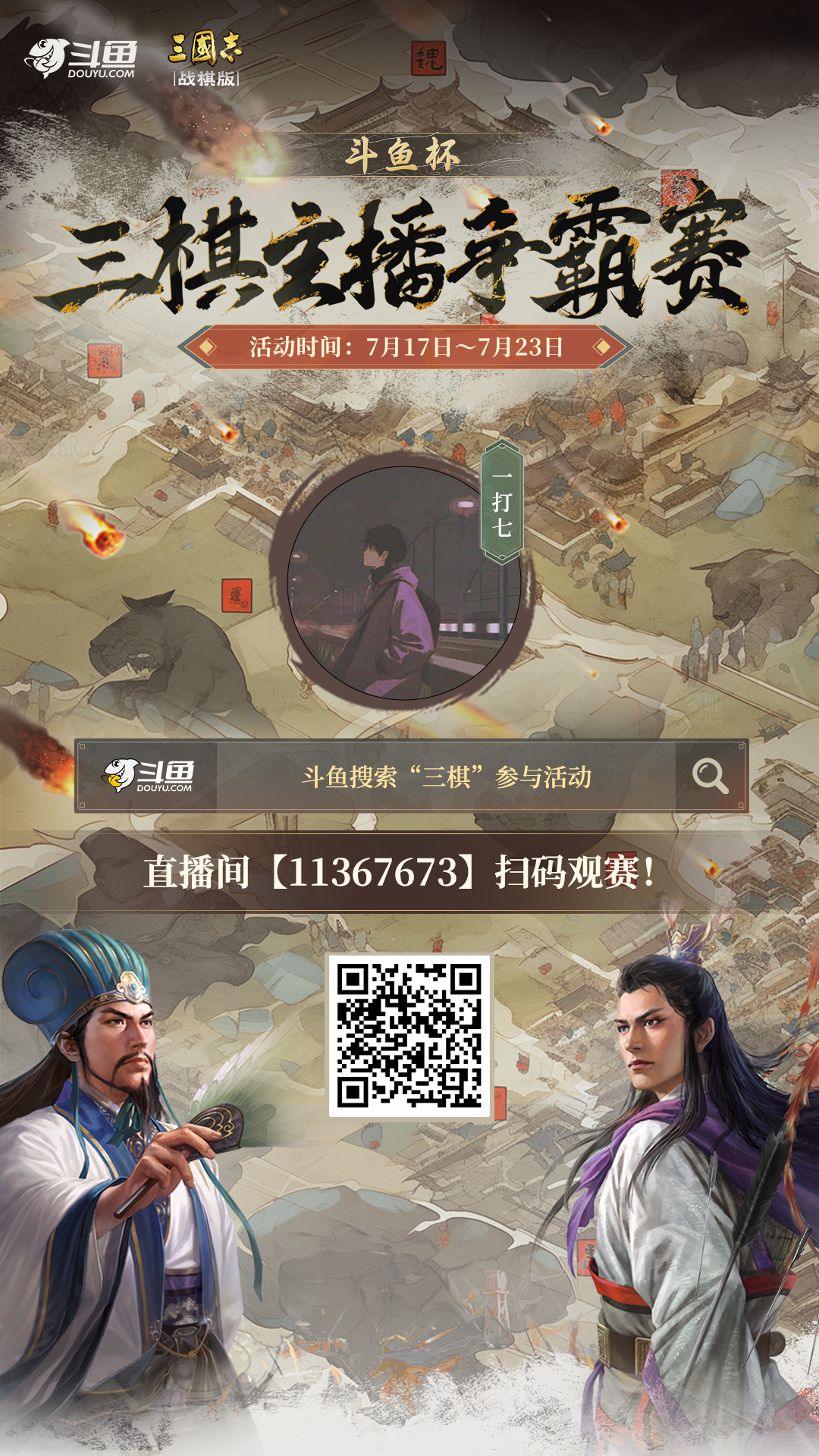 战火重燃,锋芒再现!《三国志·战棋版》斗鱼杯主播争霸赛今日开启!棋圣邀请赛冠军”西陵落木“、亚军”长风木鱼“,八强选手”李淳风“,三棋特邀解说一打七…各路人杰齐聚本周,为大家献上精彩对局!