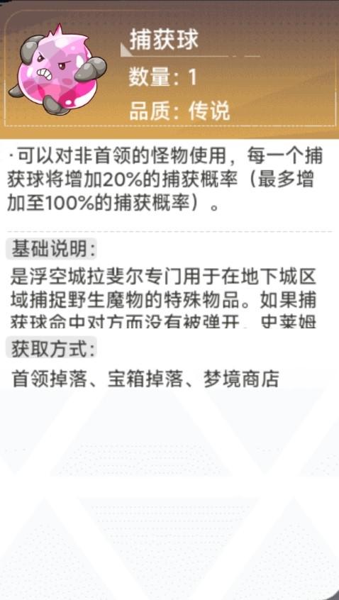 捕获球,可通过“铁匠铺-合成-道具”进行合成,副本中也有掉落