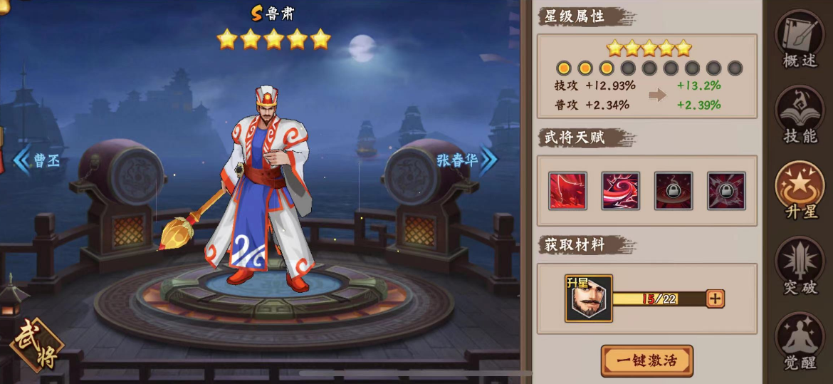 【武将特点】:鲁肃属于综合能力比较强的法系大能,其技能和天赋集吸附、追踪、增伤、减防、易伤、瞬移、增加技攻、减技能CD、麻痹、眩晕等效果于一身,能胜任PVE和PVP玩法。