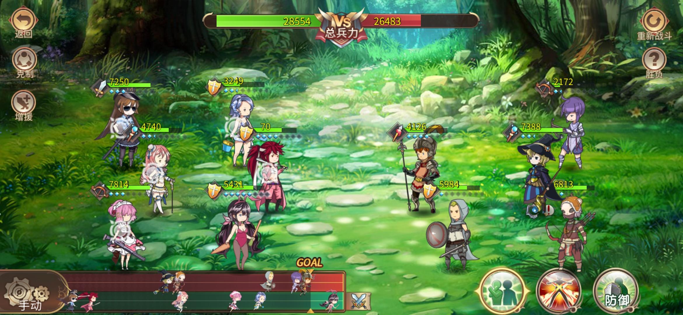 增援顺序分别为:刘备、张辽、于吉、艾斯,要求刘备张辽于吉全8心,这就产生了奇妙的化学反应,我方强行提速,可保证弓兵扫射前排,后排完全无损,注意,本次法正攻击前排,可保证艾斯抗两下不死,弓兵扫射带走艾斯。