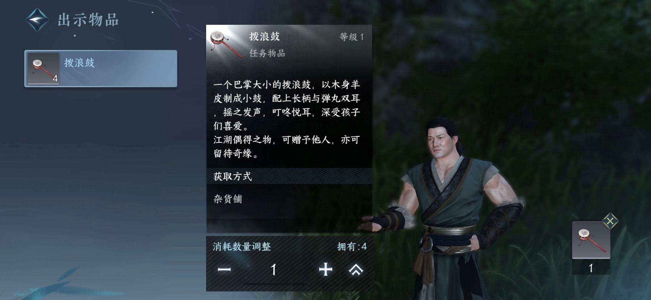 ②然后我们与NPC进行对话,根据剧情指引向他出示道具拨浪鼓,没有可以在杂货铺购买