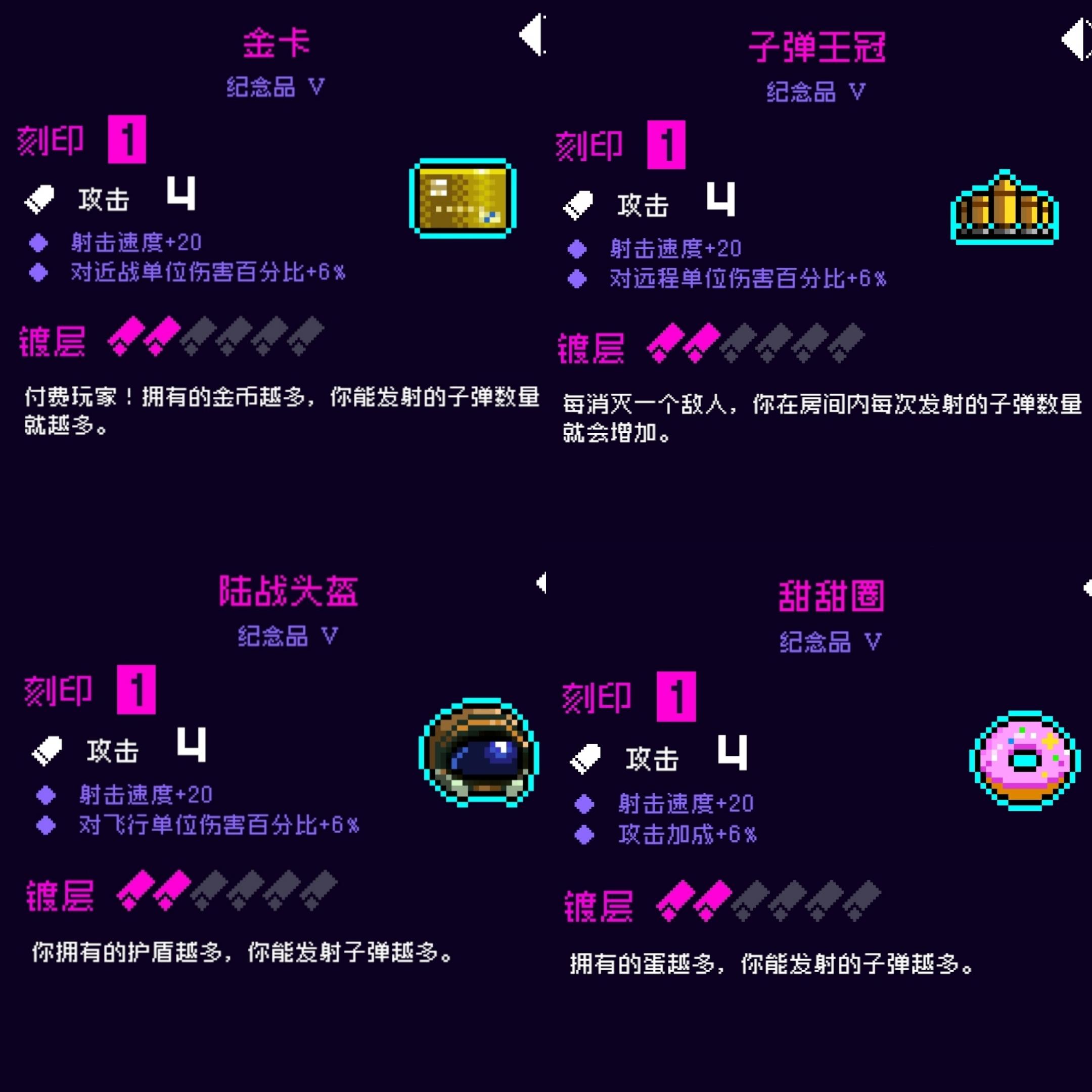 4.子弹算是很让人头疼的任务了,推荐纪念品带子弹数(王冠、金卡等)和射速(齿轮、黄金鸟等),局内武器优先选朝天椒之类的多子弹武器,一定要注意,激光类武器不算子弹数。