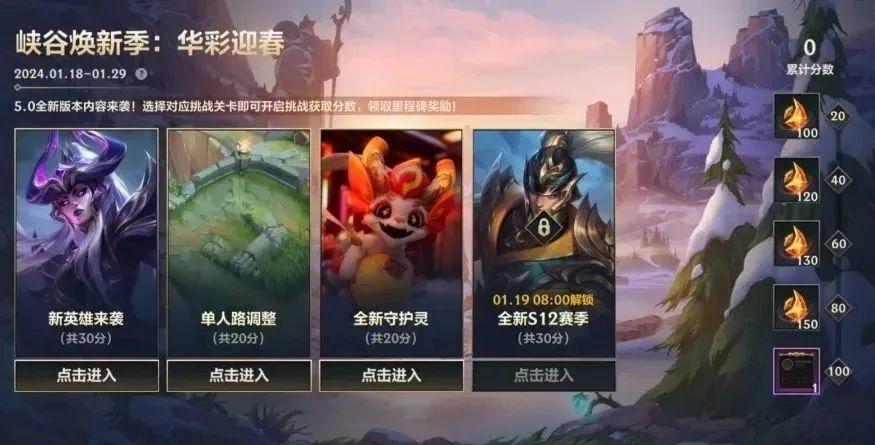 峡谷焕新,华彩迎春,全新5.0版本内容来袭!今日起,截止至1月29日,召唤师完成挑战任务获取分数,即可领取名片框“华丽加冕”、龙魂水晶*500奖励。