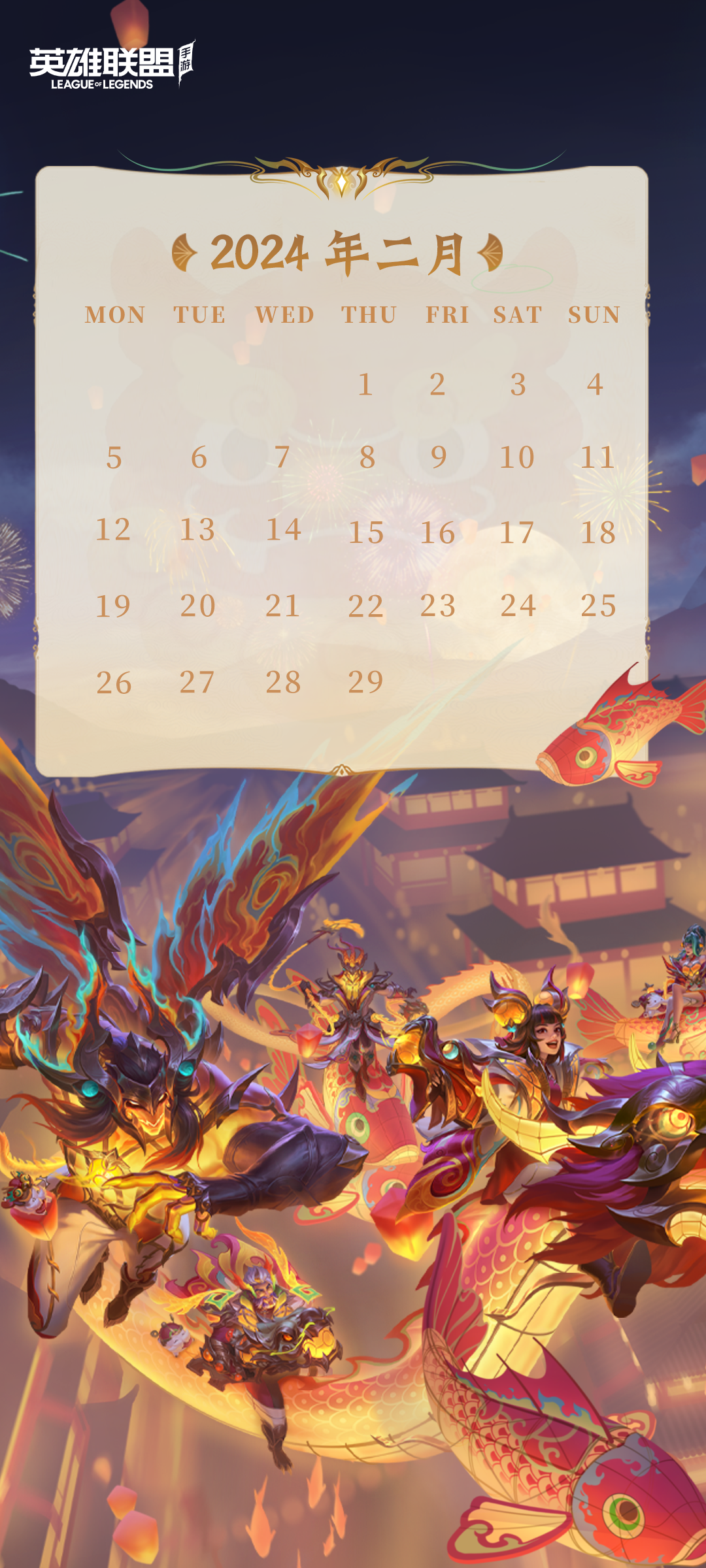 📢龙年的好运还有春晖众神们相伴!更多高清版壁纸已上传,想要获取的召唤师,可前往公众号后台私信回复🔎关键词-【2024年2月壁纸】即可获得~