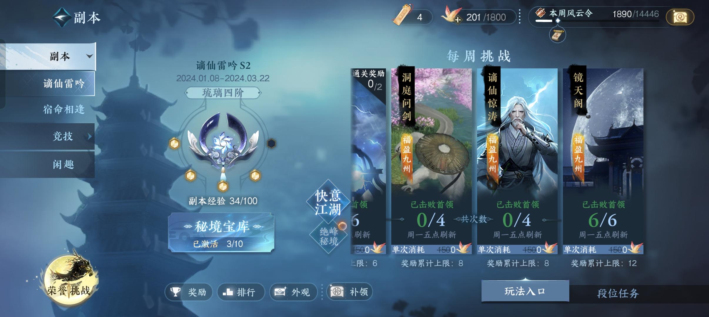目前的周本里,洞庭问剑 与 谪仙惊涛 次数共享。