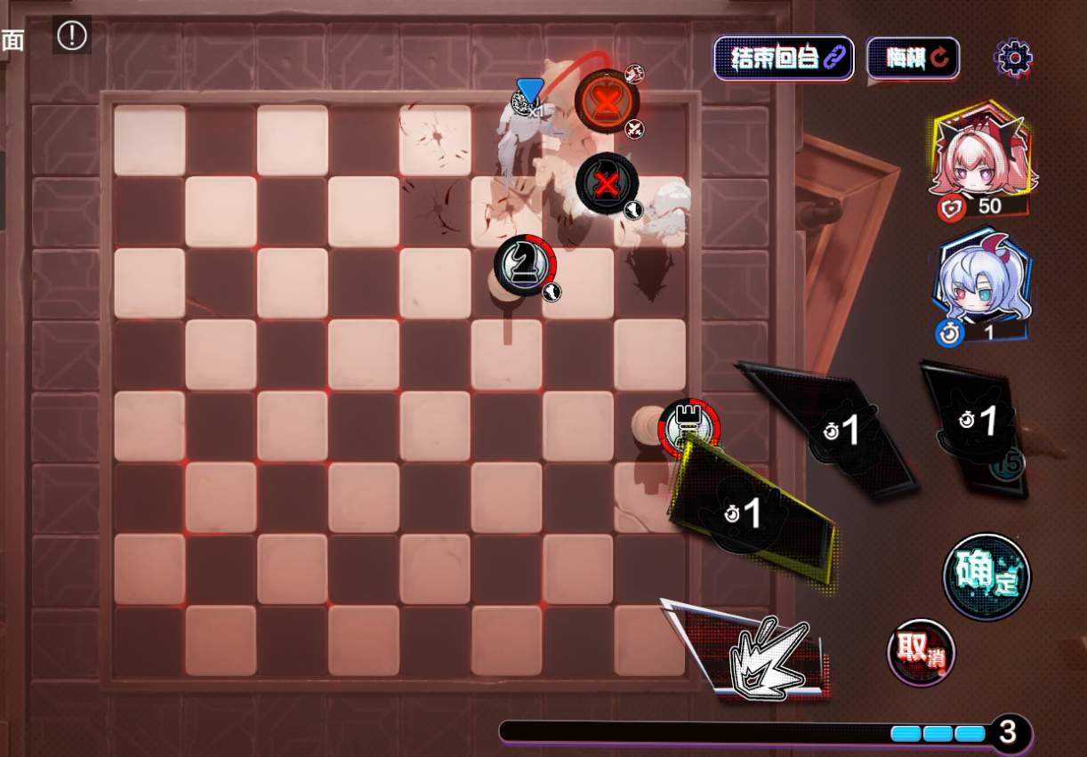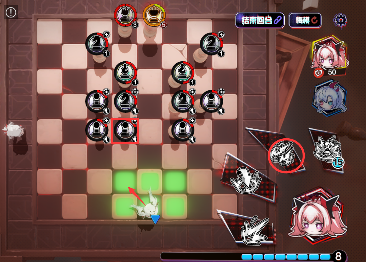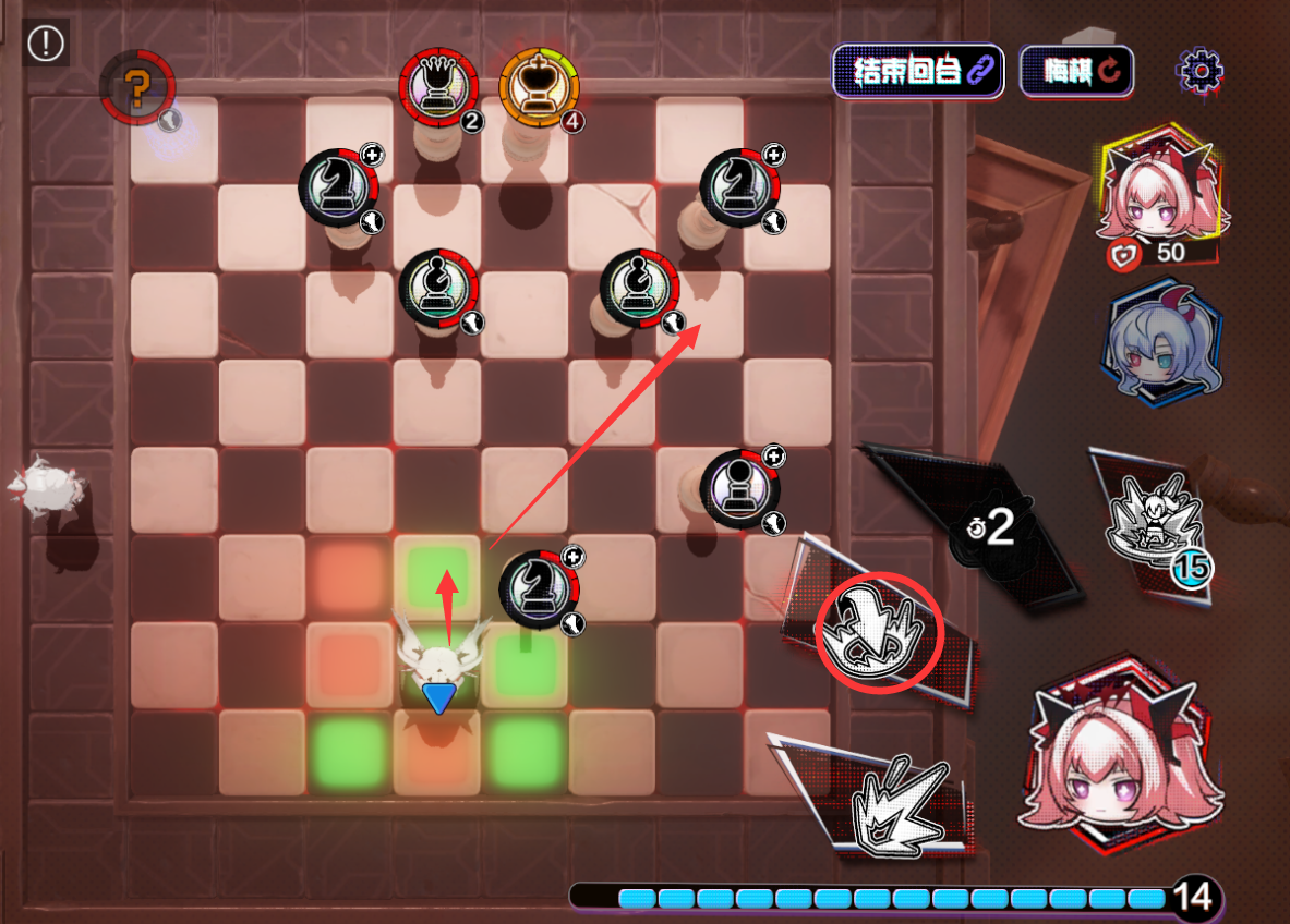 ②、右上进2,三技能攻击右2黑格子