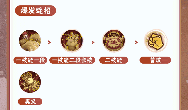 先二技能短按并立即释放二段拿到先手,随后普攻连击,等技能冷却时间结束,使用一技能一段衔接二技能短按和一技能二段短按,打出组合技。