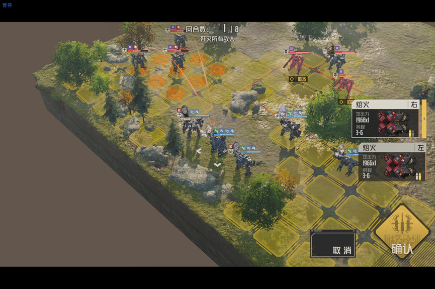 初始的怪物中,只有上方的战术射程较远可能形成集火对我方威胁大,需要优先处理,但好在都是单肩导弹,所以希儿开局直接一一断手就好。至于电磁炮,我方只要站成一列就能很好地规避他的伤害。