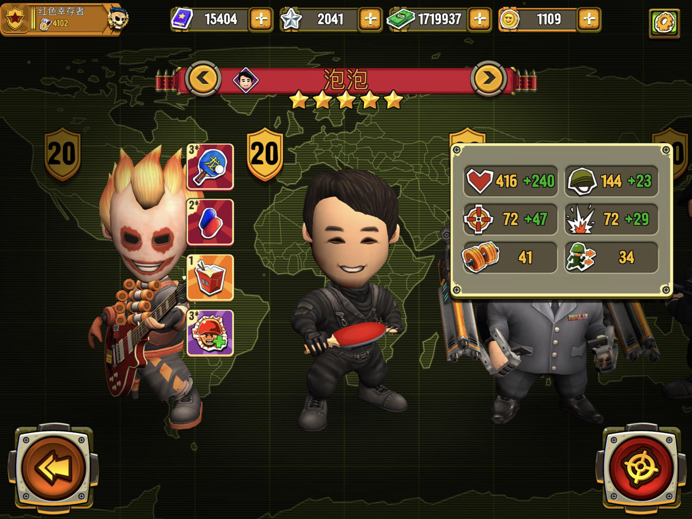 上面这个泡泡就是半肉半输出的,也就一千血左右,甲比较高,一百四,再加上装备加成,勉强够看。。刺客的隐身胶囊只能刺客带,继幽灵狙幽灵散之后的幽灵刺刀,如果你真的准备玩六刺客,这三人都得买,五星兵基础属性高,血防攻都高,可以稍微弥补血量护甲的问题,从而补攻击,天选者和泡泡这两个氪金兵武器都没啥特点,不如小刀,四倍暴击伤害,而且固定几率70暴击,无视精准,其次就是天选者的勺子暴击伤害高,但是暴击率是看精准属性,暴击伤害再高没法触发暴击都是白搭