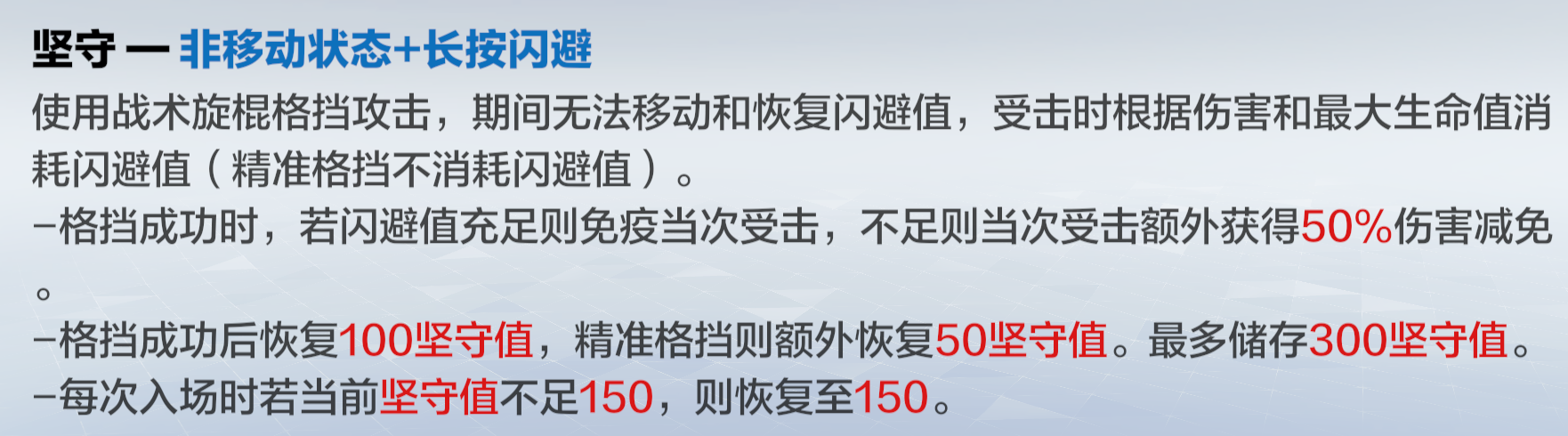 可用护盾触发红球的弹反或者格挡的回复坚守值效果。