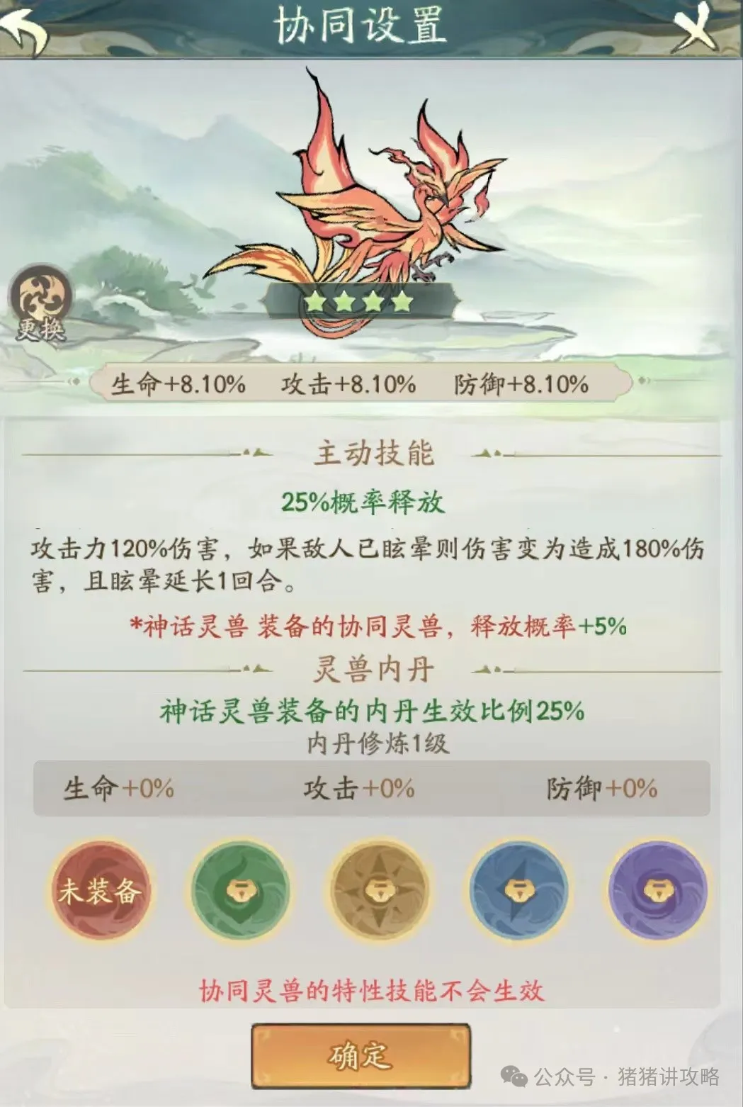 ②内丹属性会按照比例生效,传说灵兽是20%,神话灵兽是25%