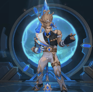 布隆的普攻和Q(1)技能:寒冬之咬会对目标施加金色花瓣印记,我方英雄的普攻会叠加此印记。当目标身上的印记达到四层后,将对其造成伤害与眩晕,此时目标头上出现紫色眩晕标识,脚下出现黄色的倒计时光圈。