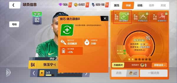通过消耗突破道具和同名球员卡即可提升球员星级,当达到规定星级,球员还可以获得新得技巧以及属性的提升哦!