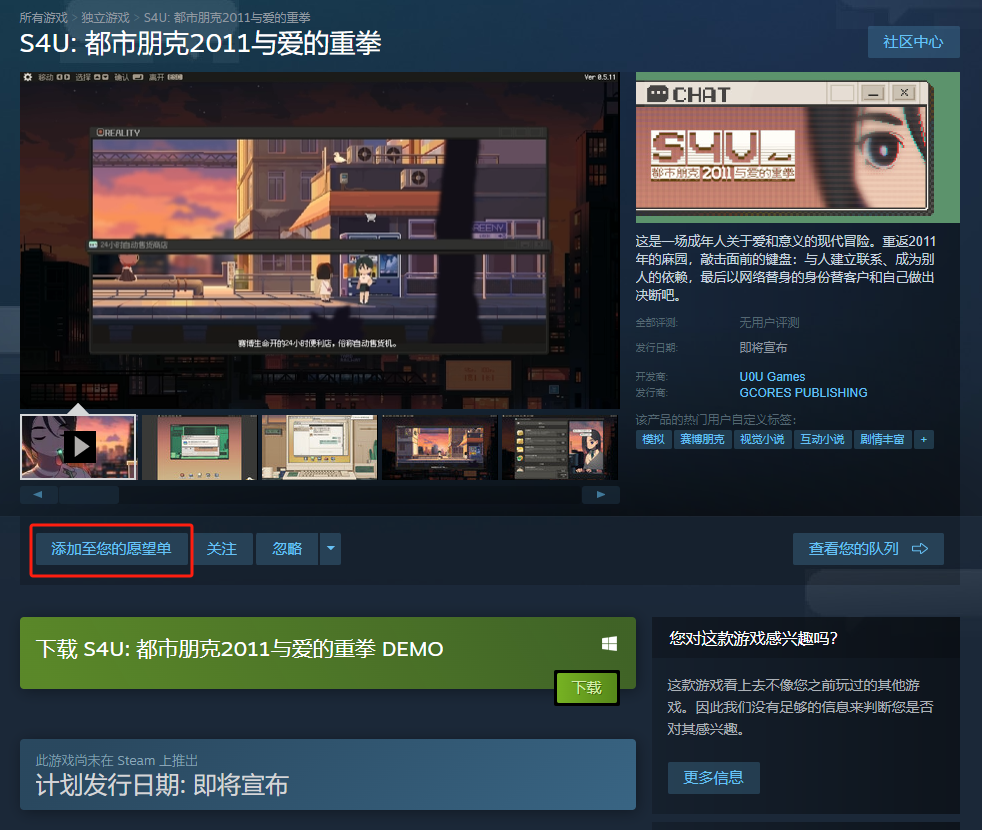 欢迎关注我们的Steam页面:https://store.steampowered.com/app/2612700/S4U_2011/ 并加入愿望单。