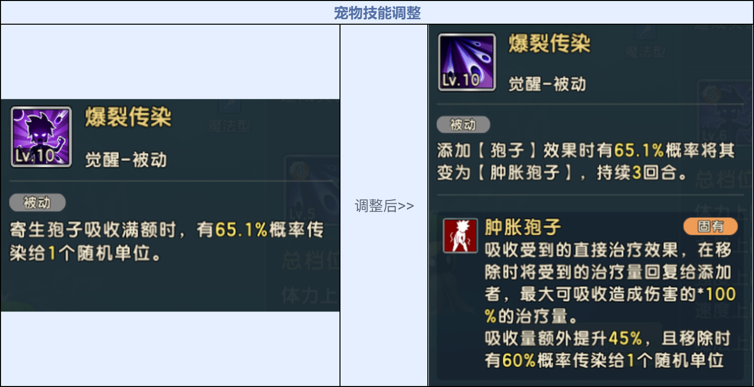 妖草科宠物技能调整