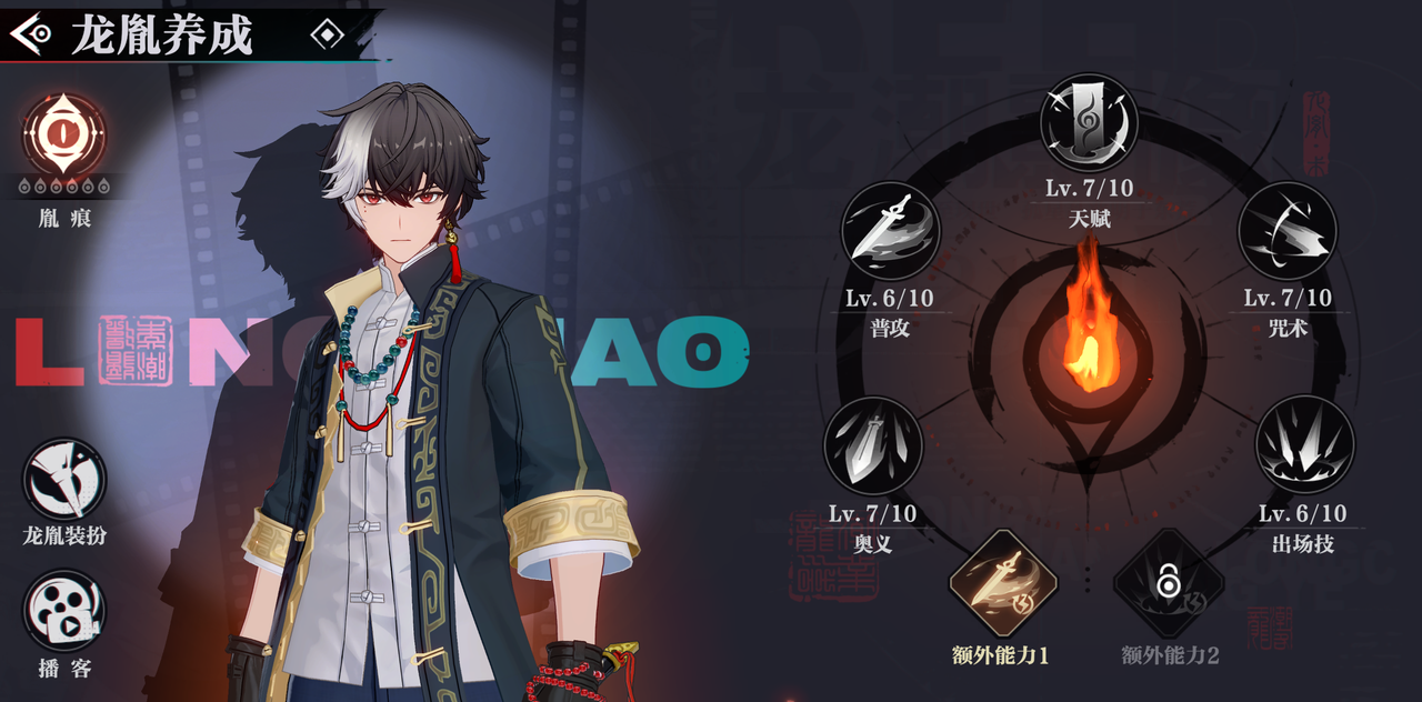3.使用【出场技】切换烛出场,落地放【奥义】,接强化【咒术】+【咒术】+【普攻】,积累天赋条再放1~2轮【咒术】+【咒术】