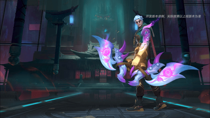 神话皮肤:满弓镇魂 箭无虚发 韦鲁斯更有专属家园卫士~巨型邪蛇蜿蜒前行,韦鲁斯单手支撑半蹲在其庞大的头部之上,蛇身灵巧地扭动,伴随身后雾气滚滚的蓝紫色拖尾特效。蛇背上显出神秘纹路,闪烁着寒光,令人不寒而栗。