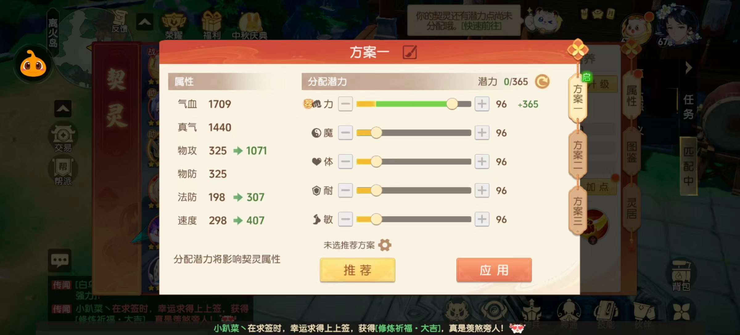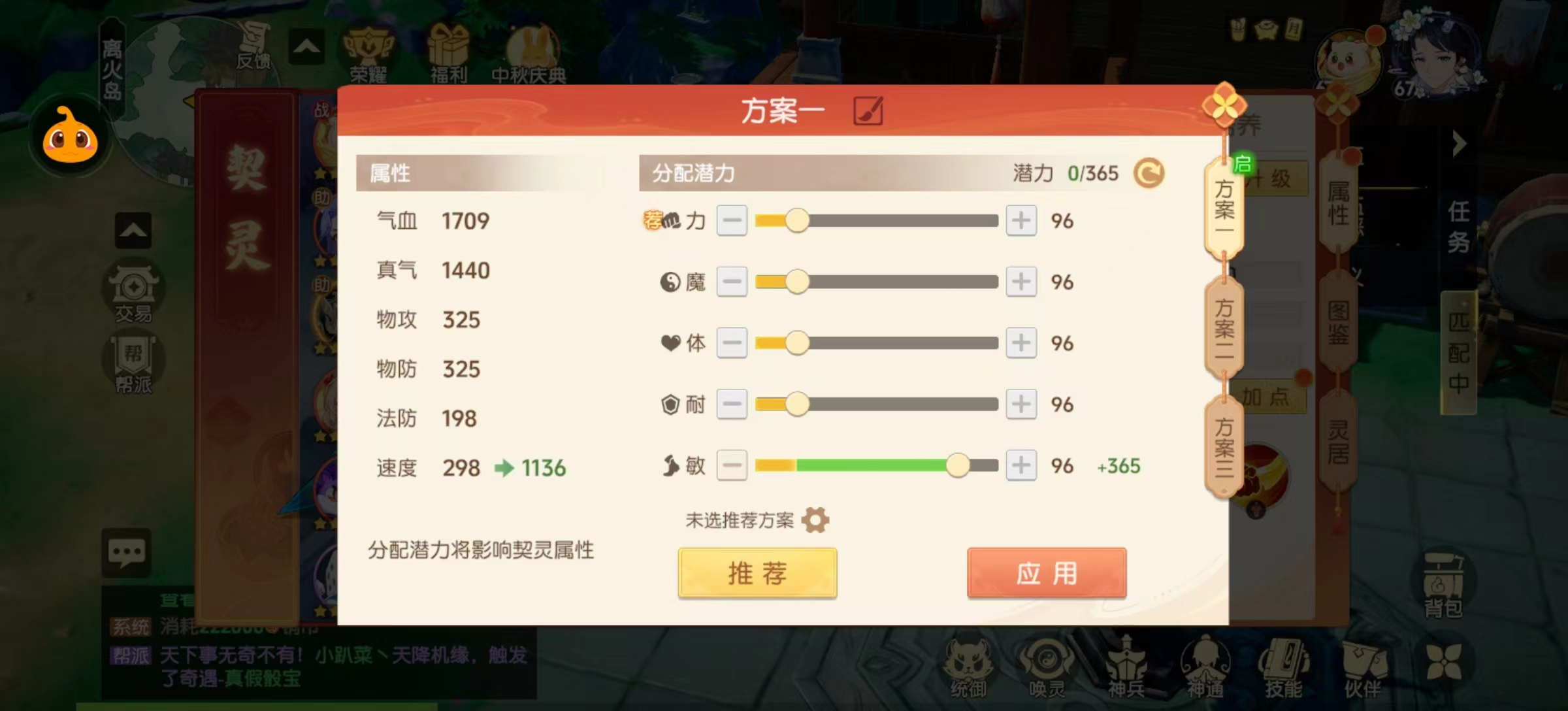 4、体力,如图,一点体力等于12.29气血+0.1法防+0.15速度。