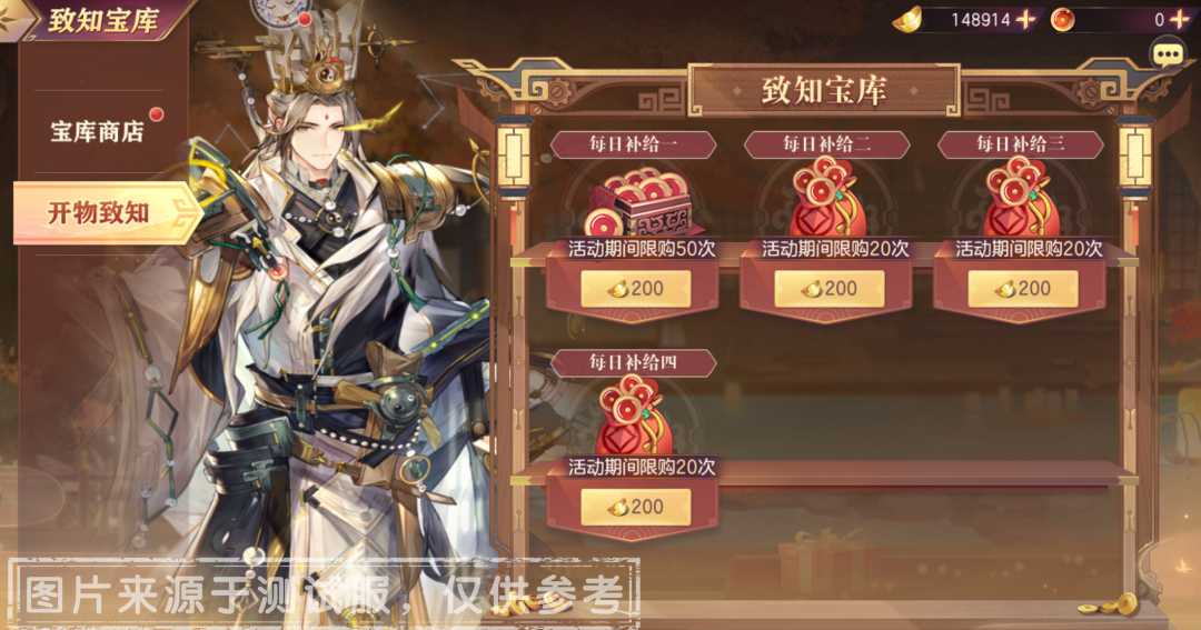 厚积薄发,韬匮藏珠!活动期间,”开物成务“限时开放,随活动开启时间解锁奖励,小将军可领取「元宝」奖励,与此同时,小将军也可花费128元开启韬匮藏珠奖励,额外领取大量「元宝」奖励。