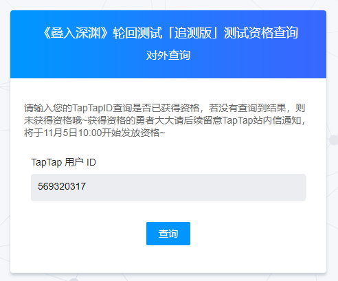 注:如输入后显示【没有查询到结果】……则表示很遗憾本次没有入选!(不要灰心!后续还有送资格活动~!还有机会获取测试资格哒(๑•̀ㅂ•́)و✧!
