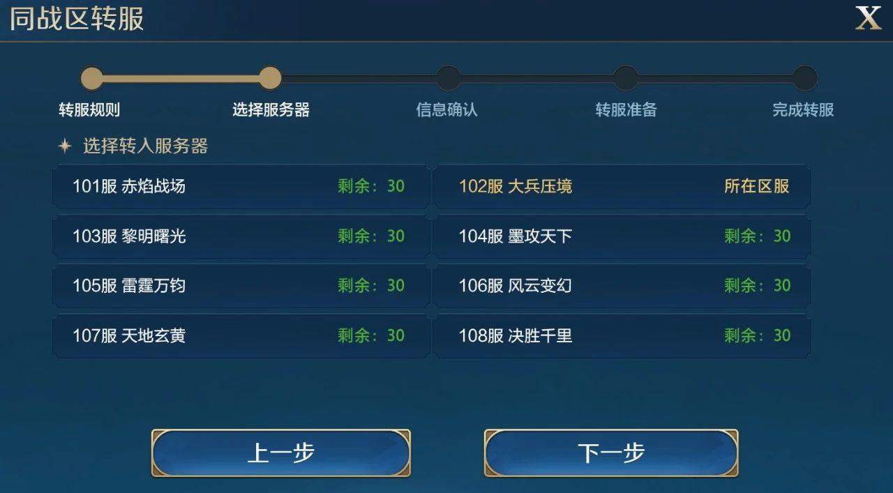 3、转服名额先到先得,每个基础服最多转入30名开拓者,转入名额满后不可继续转入。