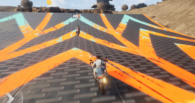 在轰鸣声中与其他35位选手一同穿越重重光门,在赛道上自由狂飙,尽情领略摩托竞技的独特魅力!