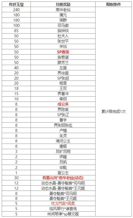 2、若兑换奖励是在此次活动前已拥有的永久武将、皮肤、三国秀,则无法重复兑换 ;