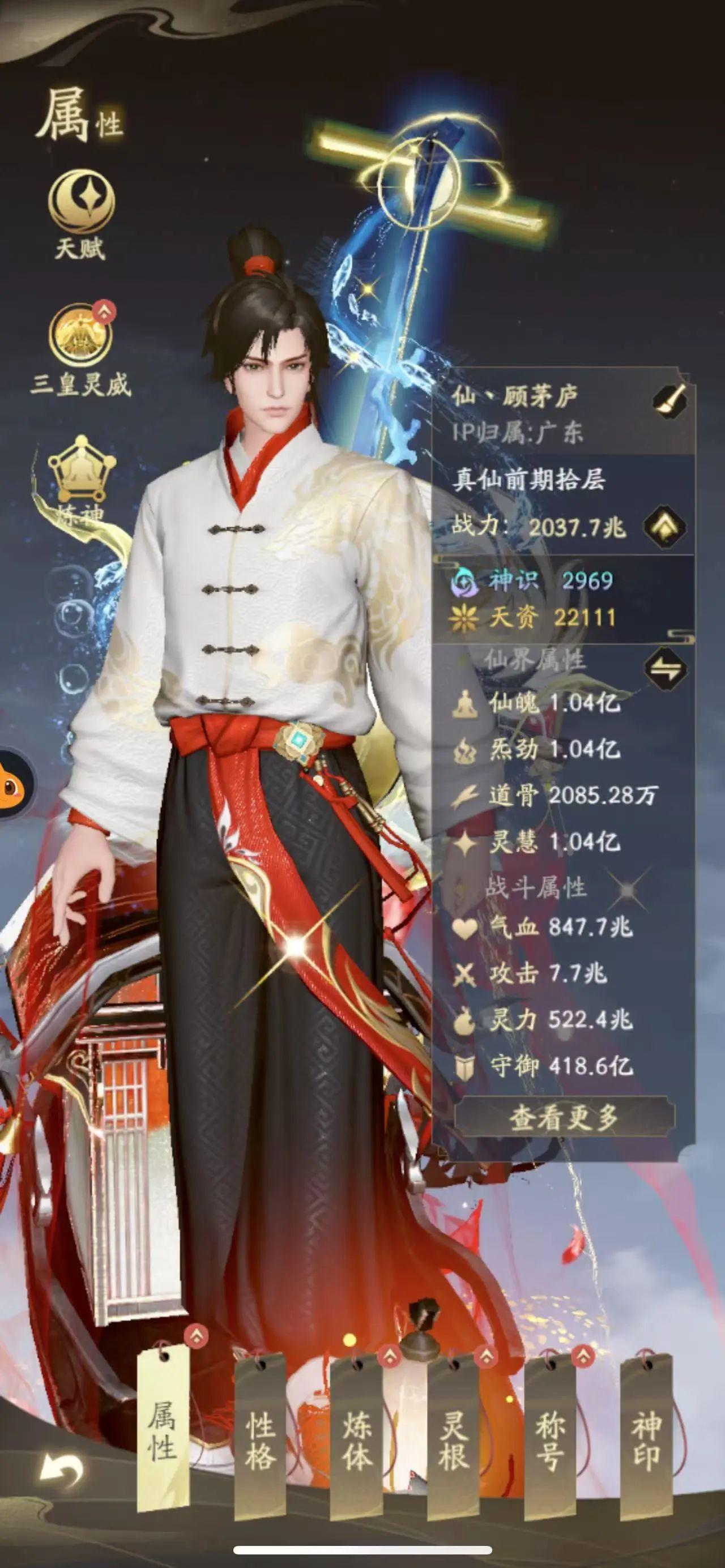 仙丶顾茅庐:大家好,我是昆仑园区的二师兄,职业是体修,宗门的话,在48妖谷,攻击7兆左右。