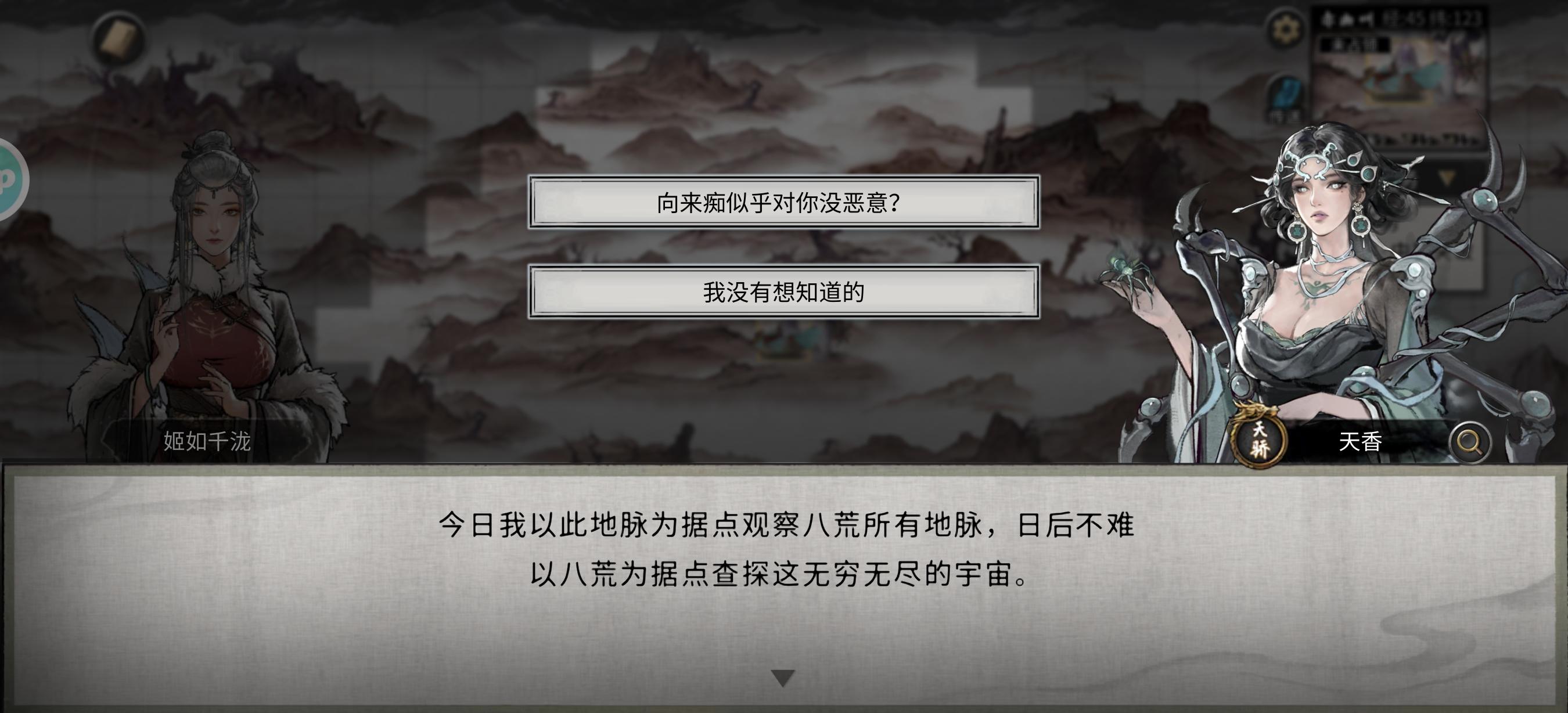 ❹道心阁 随便找个妖兽巢穴,地上尸体摸宝触发。然后很长一段任务根据你的选项加亲密度。假冒天宝道人二阶段是必定秒杀,不用挣扎。选道心阁,道心转化为无名·天机(蚀心我没选过)获得七星剑瀑想要可以直接换自己天赋,不要点出去就行了。蚀心阁是冥河之主。七星帅个人感觉一般,不是刚需。风起萍末就不说了