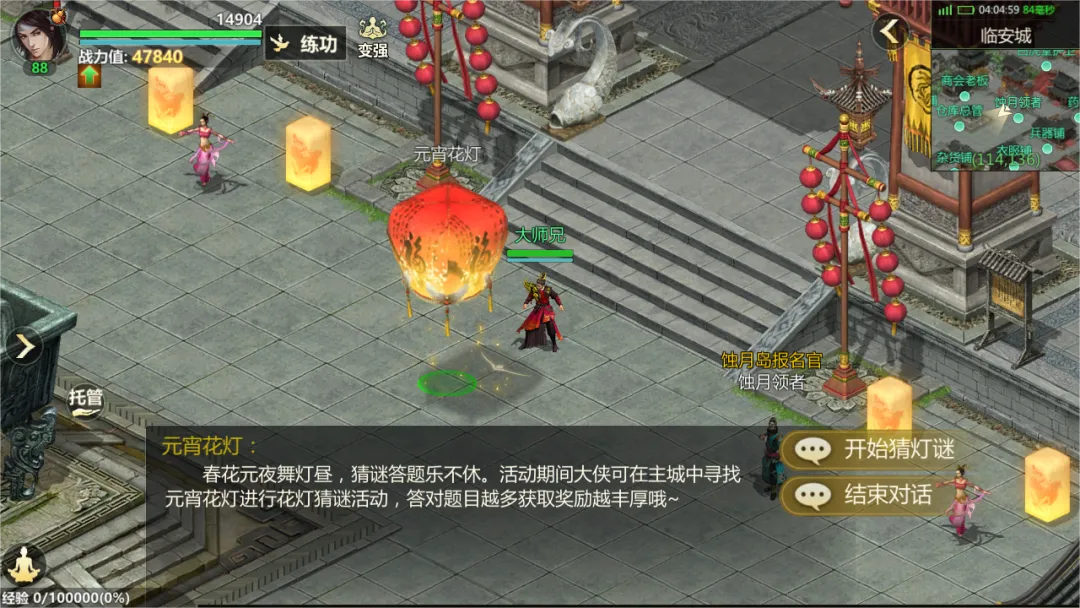 有灯无月不娱人,有月无灯不算春。活动期间内,每日前往临安城寻找元宵花灯,完成花灯谜题,可获得高级玄晶、修炼丹和五行魂石等奖励
