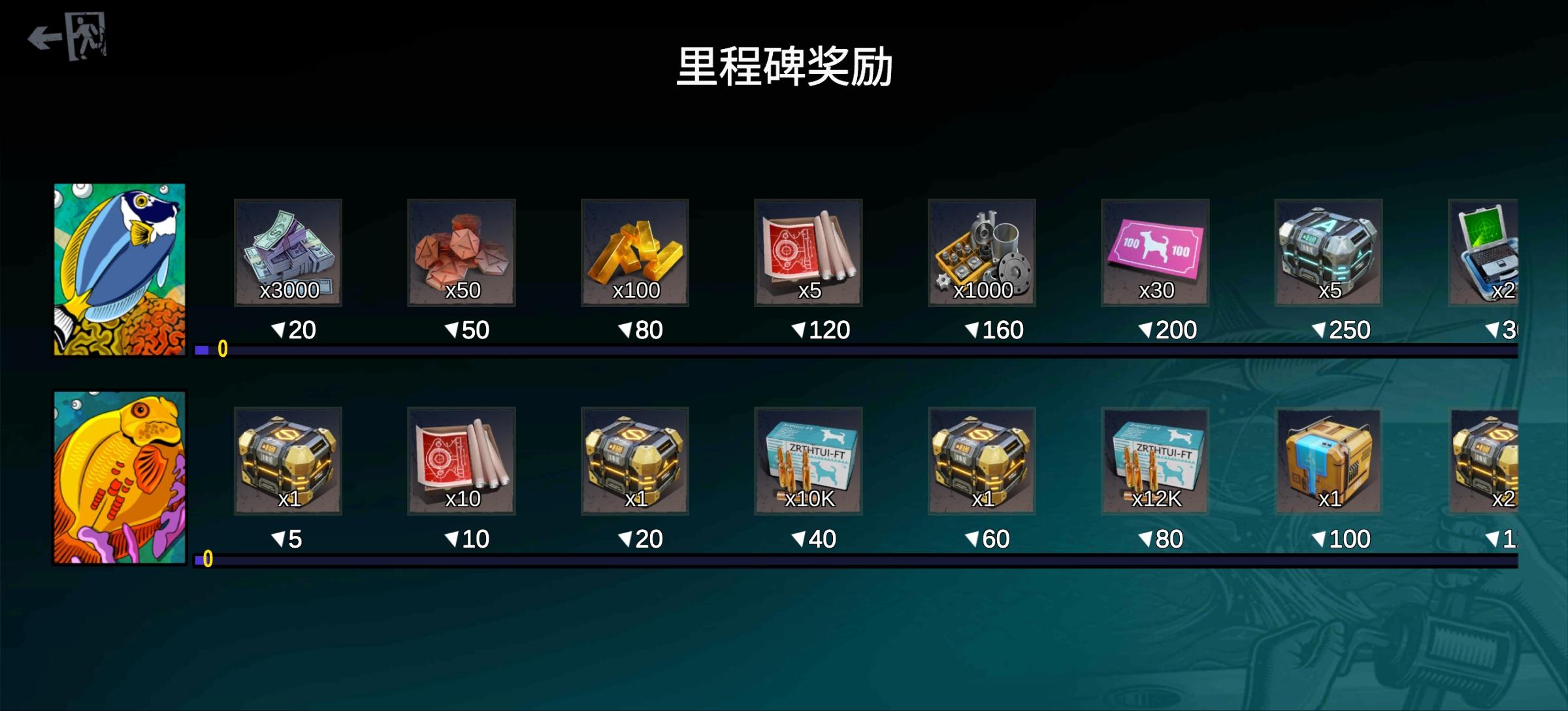 调整了里程碑奖励规则,不再限定永恒白垩地图,而是所有地图只要钓鱼即可按照数量获得相应档位奖励。