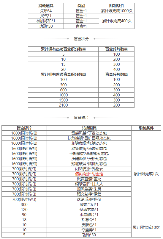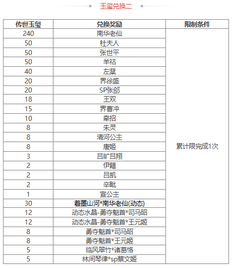 2、若兑换奖励是在此次活动前已拥有的永久武将、皮肤、三国秀,则无法重复兑换 ;