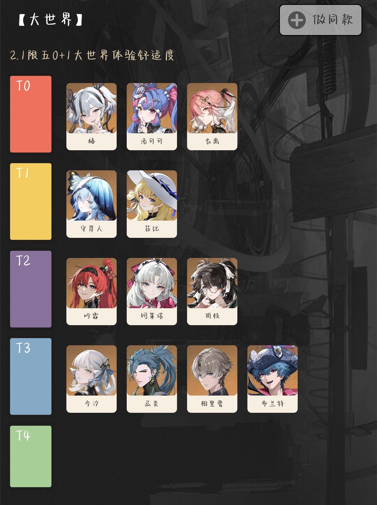 t0 忌炎,守岸人,椿,洛可可