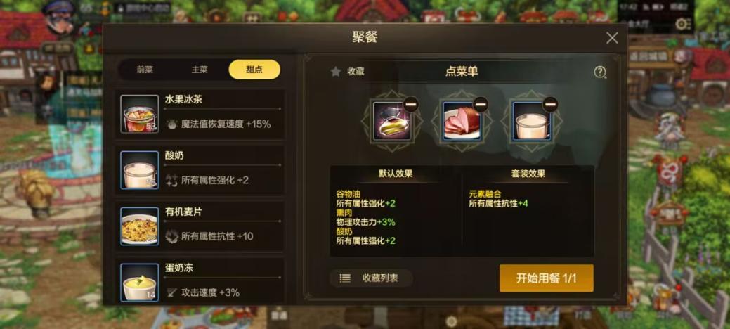 目前全服所有公会餐车都是2级,聚餐可以吃到3%物理魔法攻击力加成和4点全属性强化。