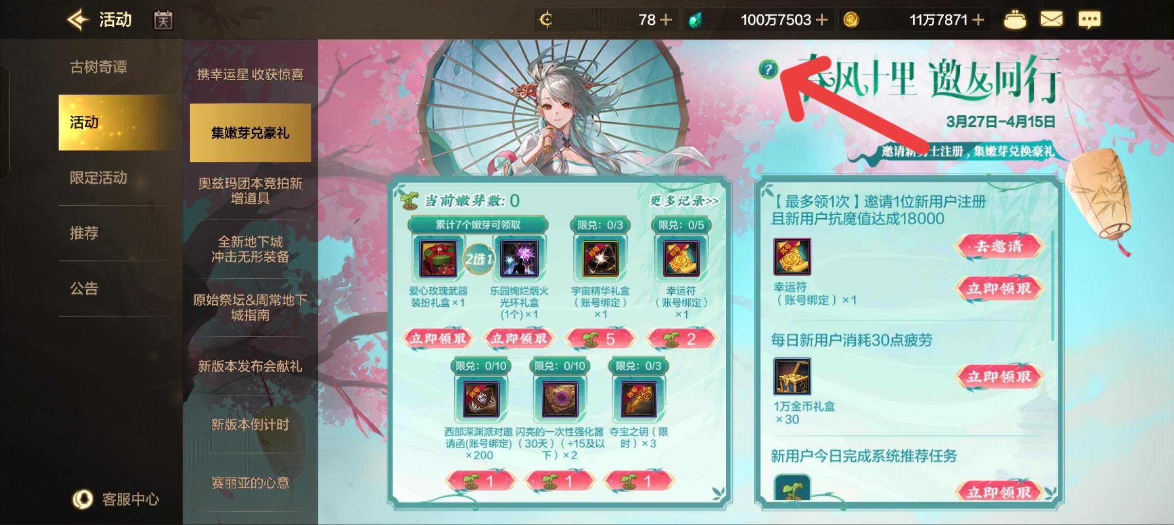而部分活动设定参与规则,点击活动上方“?”可以查看玩法介绍。