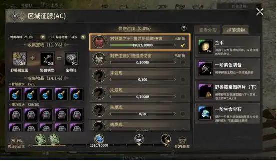 AC系统以游戏内各区域为核心机制,通过统计玩家对各区域的探索完成度来评估其征服进度。每个区域均设有独立的探索完成率指标,完成率越高,玩家可获得的奖励越丰厚。该系统包含常规地图征服与特别成就任务两大板块,覆盖布拉齐恩大陆与塞利安特大陆多个区域,各区域最高探索率均设定为100%。