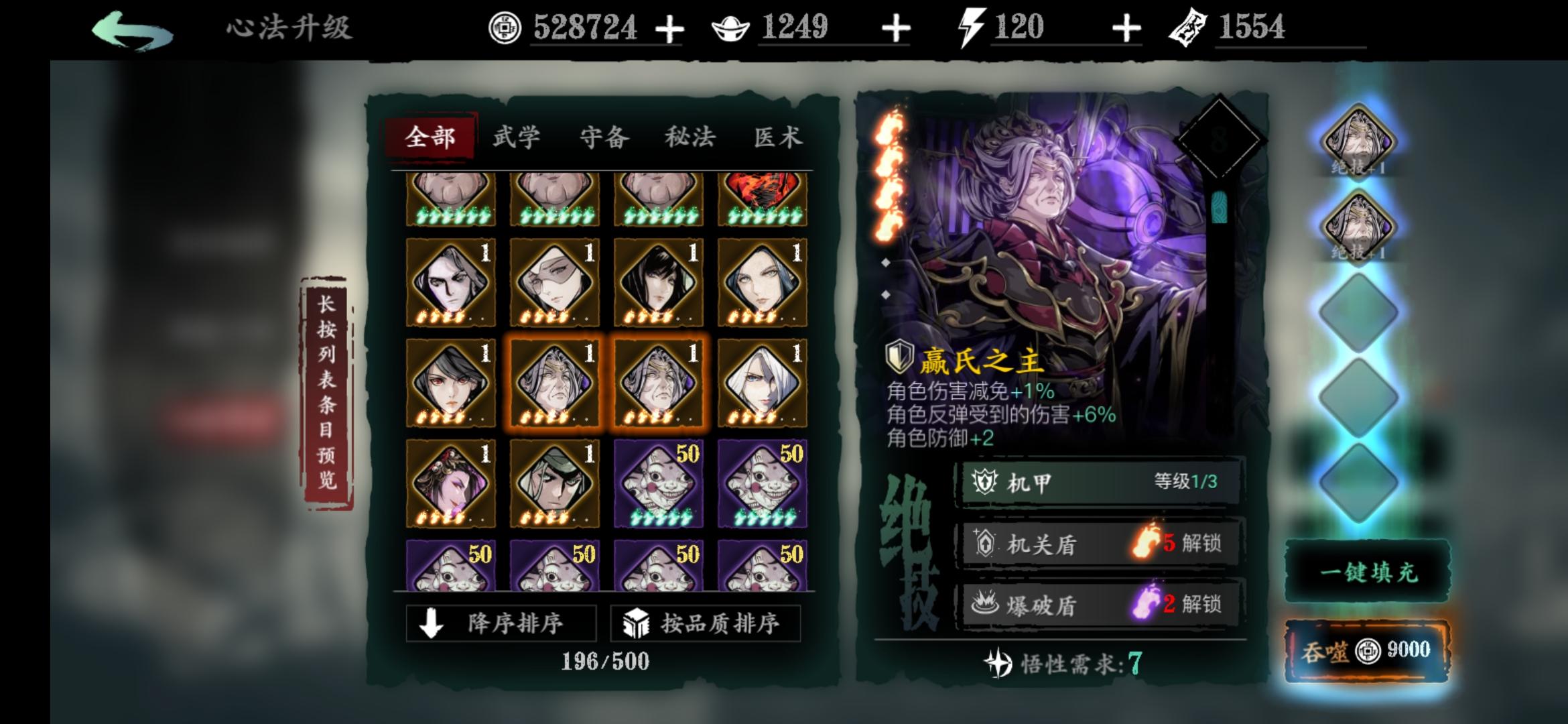 想要一路靠着吞心法升级,铜币的花销绝不是小数目,而心法的容量只有500。要注意每到上限,我们就必须清理心法,否则无法获取新的心法。目前我也没有找到分解或者丢弃的方法。