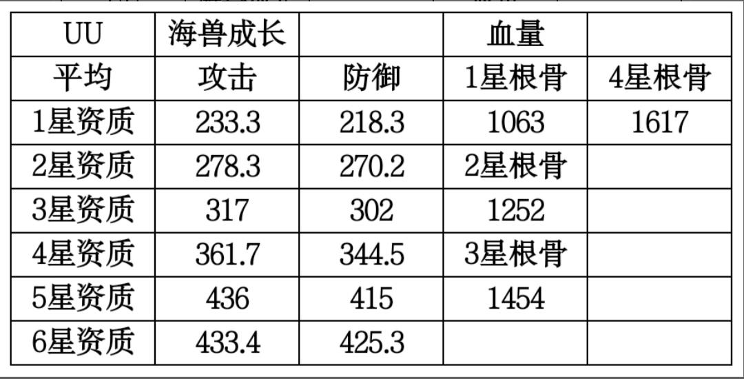 以及海兽成长的统计数据:高资质与高根骨需继续收集样本。