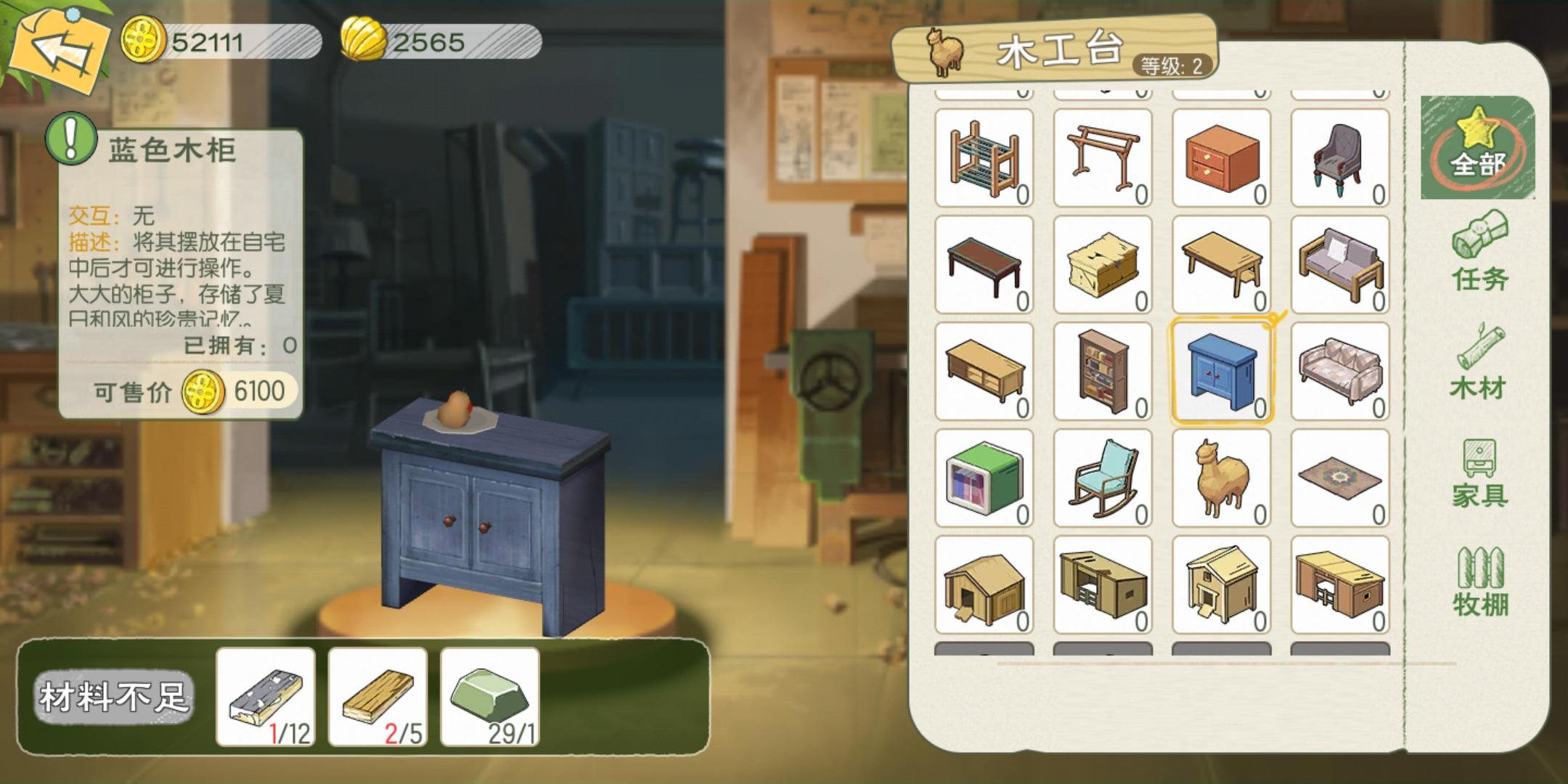 最不推荐的是鹿鸣写字台——售价2500,但是需要的材料是稀有木材:露桑松树、水拓拓木树(都是10分钟刷新,每次数量只有2课)